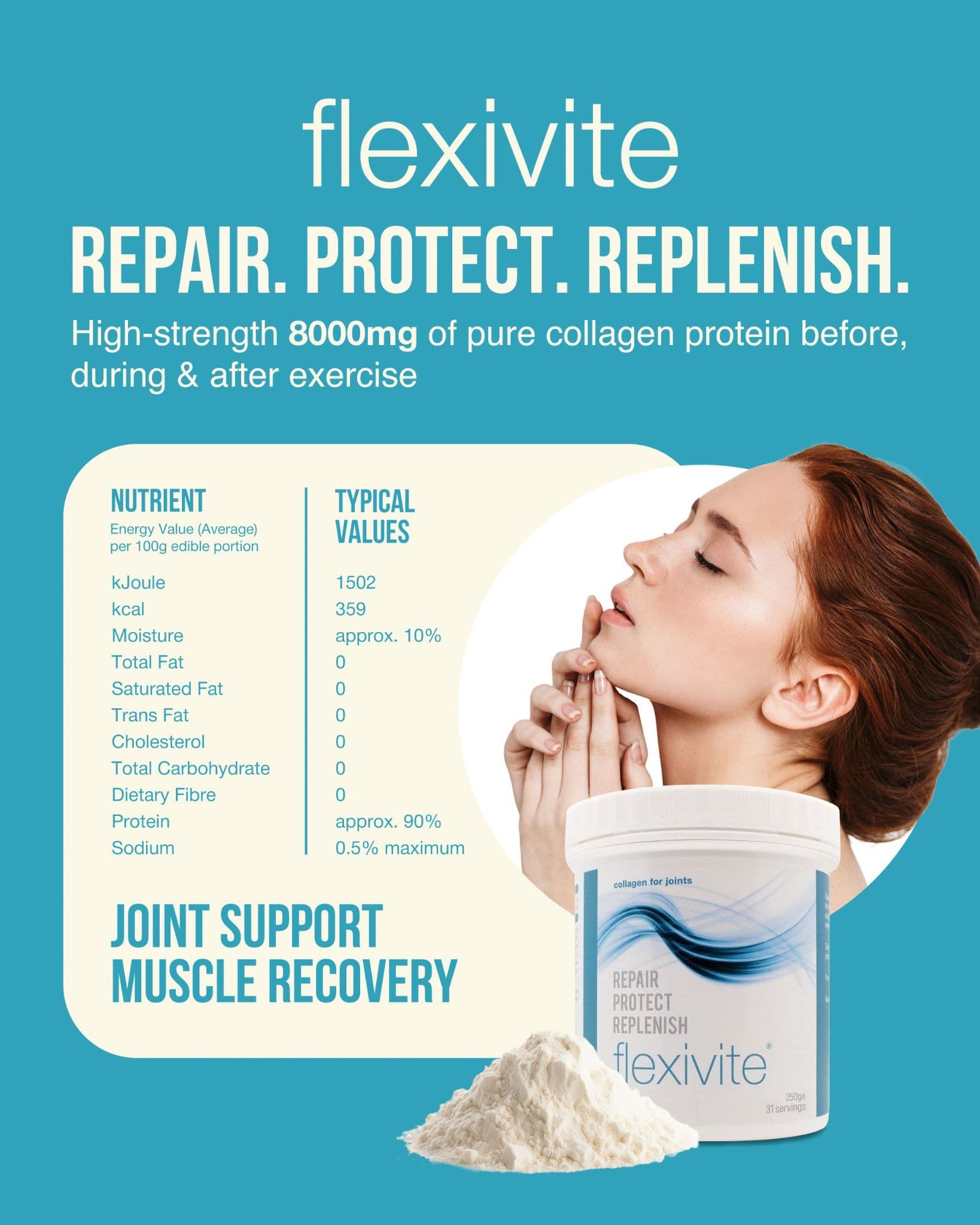Flexivite is 100% pure Collagen Hydrolysate, providing high level care and support for joints and muscles.